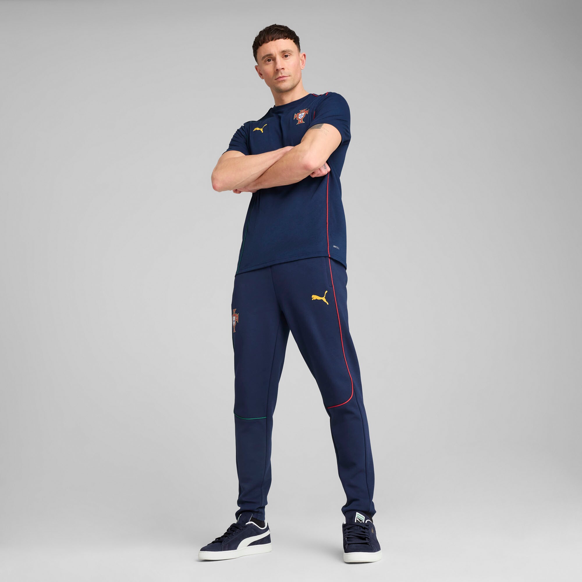 • Channel your unwavering support for the Portugal National Team with this Puma Casuals T-Shirt. This shirt features contrast-color piping for a touch of flair and is crafted from breathable polyester to keep you cool and comfortable. The heat-sealed club applique on the left chest and club wordmark printed across the back boldly display your support for the Portugal National Team.