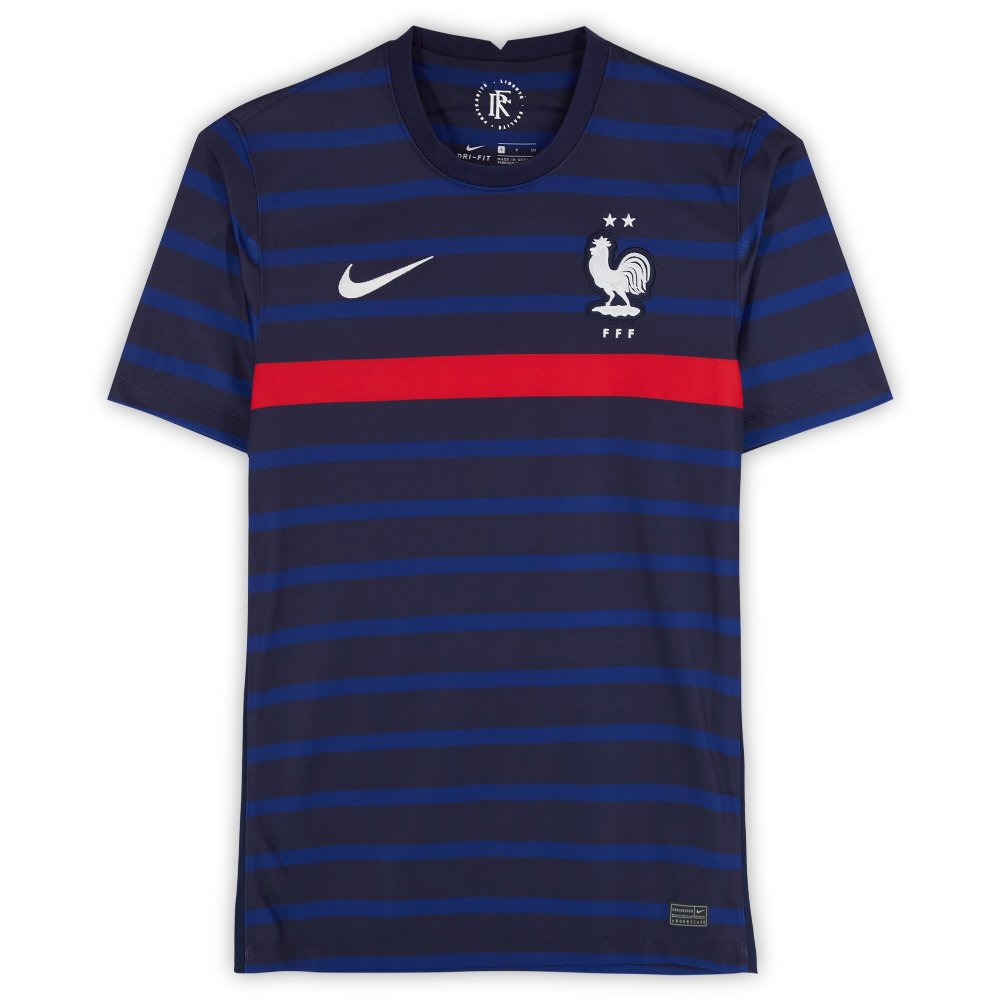 Elevate your collection of France National Team memorabilia by picking up this Zinedine Zidane autographed 2020 Navy Home Nike Jersey. Featuring a striking signature from the France National Team star, it's a must-have addition for any die-hard fan or serious collector. This collectible also includes an individually numbered, tamper-evident hologram that can be verified online to certify its authenticity.